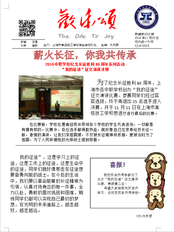 论坛>上海市曹杨职业技术学校>上海市高级技工学校>[高技易班]上海市高级技工学校校报第三期