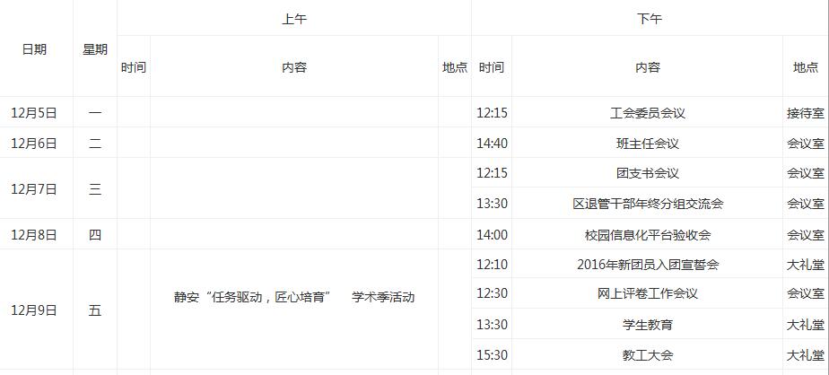 市北职高一周工作安排表(第十五周)