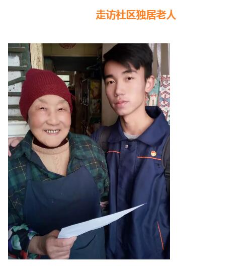 一组志愿者负责和社区老师一起看望独居老人。消防志愿者以聊家常的方式反复为老人们讲解了用水用火用电的安全知识和注意事项,让老人们能真正听得懂,接受得了。“我年纪大了记性不好了,行动也迟缓,谢谢你们在这么冷天气来给我普及安全知识,来关心我的生活……”有一位独居老人说道。虽然天气寒冷,可是却挡不住我们志愿者为居民们服务的心。