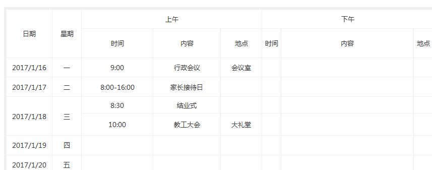 市北职高一周工作安排表(第二十一周)