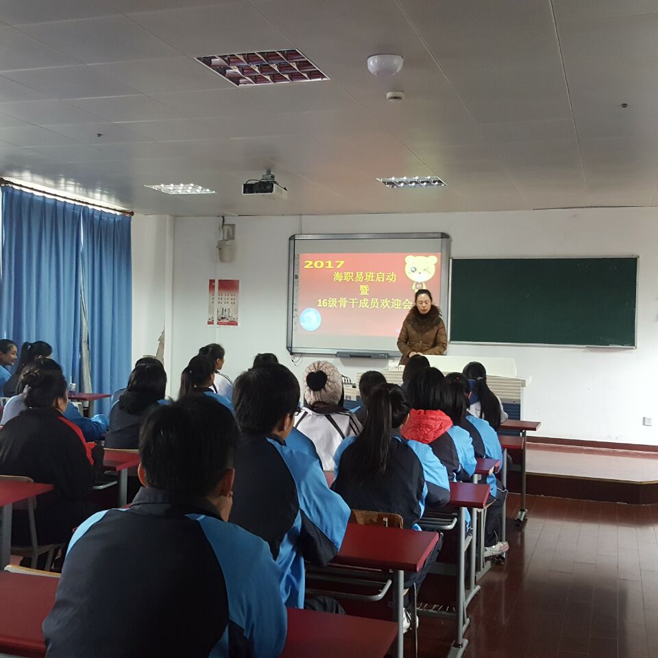 在2017年2月21日的中午易班召开了新学期第一次会议——海职易班启动暨16级骨干成员欢迎会。首先辅导员陈莉老师和政教处的马海俐老师对这次16级的学弟学妹们提出了肯定和赞许。