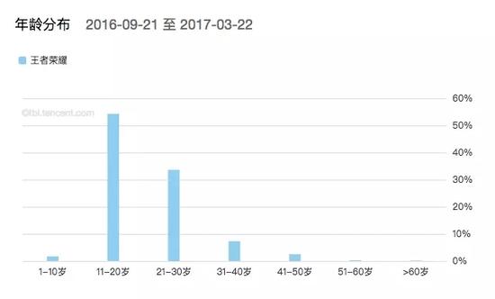 虽然这款游戏官方提示面向16岁以上的玩家,但根据腾讯浏览指数平台上的《王者荣耀》年龄分布,却是11岁至20岁的用户比例高达54%。一些家长告诉记者,小学三年级的小朋友都热衷于玩这款游戏,他们表示十分担忧,这些小学生都还没学过真正的中国历史,让游戏先入为主,形成了对历史人物的角色定位,就算以后学了真正的内容,也会像白纸乱涂了色彩,即使再擦掉仍会有印迹,会对历史有误读。