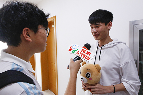 我们首先采访到的是心理话剧社社长赖勇,他向我们表示:我们对于这次节目准备了很长时间。在排练的过程中我们也遇到了不少的困难,但经过大家一次次的磨合现在都能表演的很自然了。希望今天我们话剧社的表演能给观众带来一些启发,也祝愿这次的活动能圆满成功!