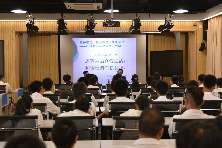 为迎接国际禁毒日到来,加大禁毒宣传工作力度,根据《2017年静安区全民禁毒宣传月活动计划》(静禁毒办[2017]6号)文件精神,市北职高与宝山路街道禁毒办、上海市中医医院联合开展“禁毒教育进校园”活动。