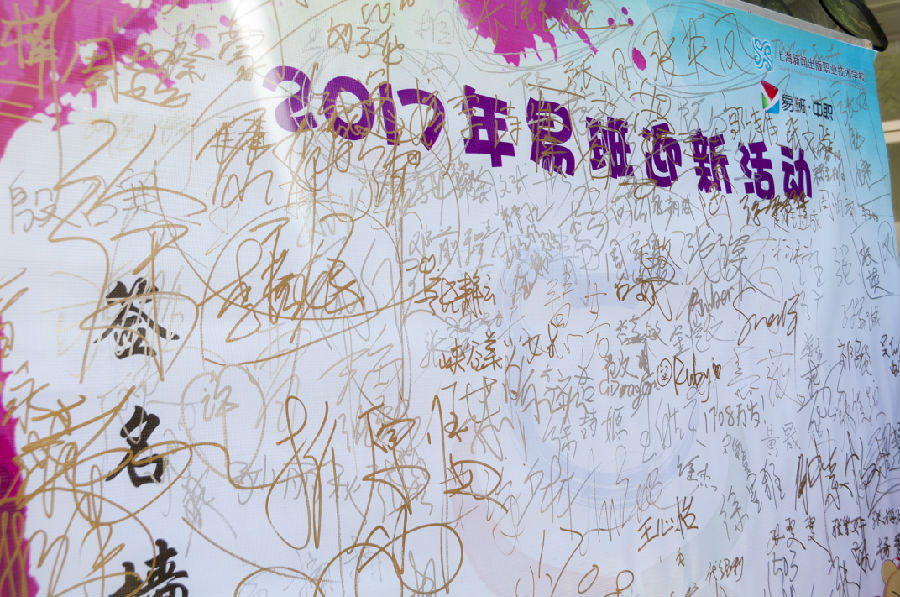 活动十分热闹,各个项目大排长龙,充满欢声笑语;签名墙边围满了同学,五只签名笔也满足不了这么多的同学;四楼兑奖处,同学们拿着一张张集章卡,从兑奖处的工作人员手里,换回一份份精美的奖品,参与本次活动的志愿者及我校易班站内工作人员忙的不亦乐乎。人群之中还穿插着易班采访小队,采访着路人各种问题……