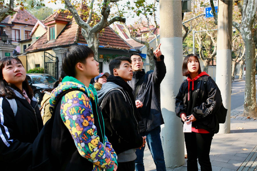 在导游老师生动有趣的讲解下,大家意犹未尽的参观完了周公馆,开始漫步思南路,老师说每次漫步老建筑,都有不一样的感觉,目睹上海历史,了解这条路上背后的故事......