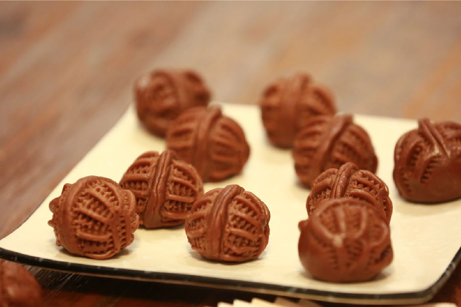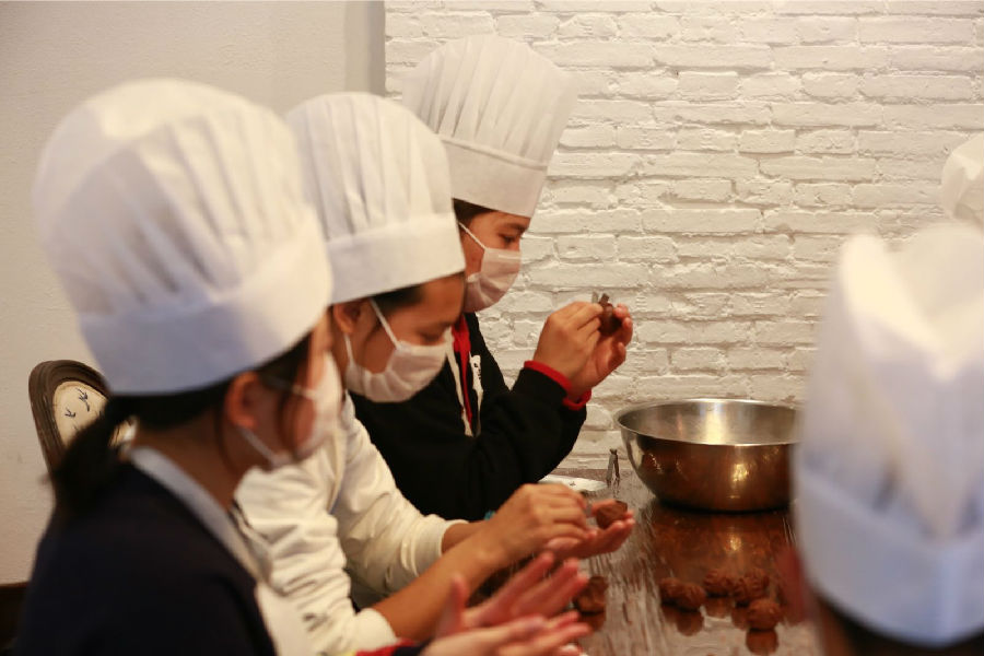 最后,老师带领大家到了“蒲石小点”,糕点师傅带领大家手作海派点心—象形核桃酥,师傅先为大家现场手作并展示了一个成品,小巧玲珑又栩栩如生的一个“核桃”,一下子把大家的兴趣提到了最高点,争先恐后迫不及待的想要动手做出自己的“核桃”,但自己动手了才知道哪有那么好做,一次次的失败让大家渐渐对自己产生了怀疑,可师傅却耐心又仔细的一遍遍教着我们、鼓励我们。最终,在大家互帮互助下,终于做出了属于我们每个人的成品,大家看着自己手作的“核桃”别提有多自豪了!
