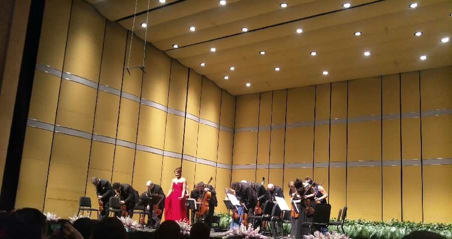 当我们还沉浸在莫扎特的D大调时,女高音德尼兹穿着华丽的礼服,带着自信的面貌,站在舞台的中央,还未开口,却引人注目。当她开口唱《唐璜》的第一句歌词时,清脆嘹亮的音色,丰富的表情和肢体动作,让整场表演更加美轮美奂,观众无不赞叹。