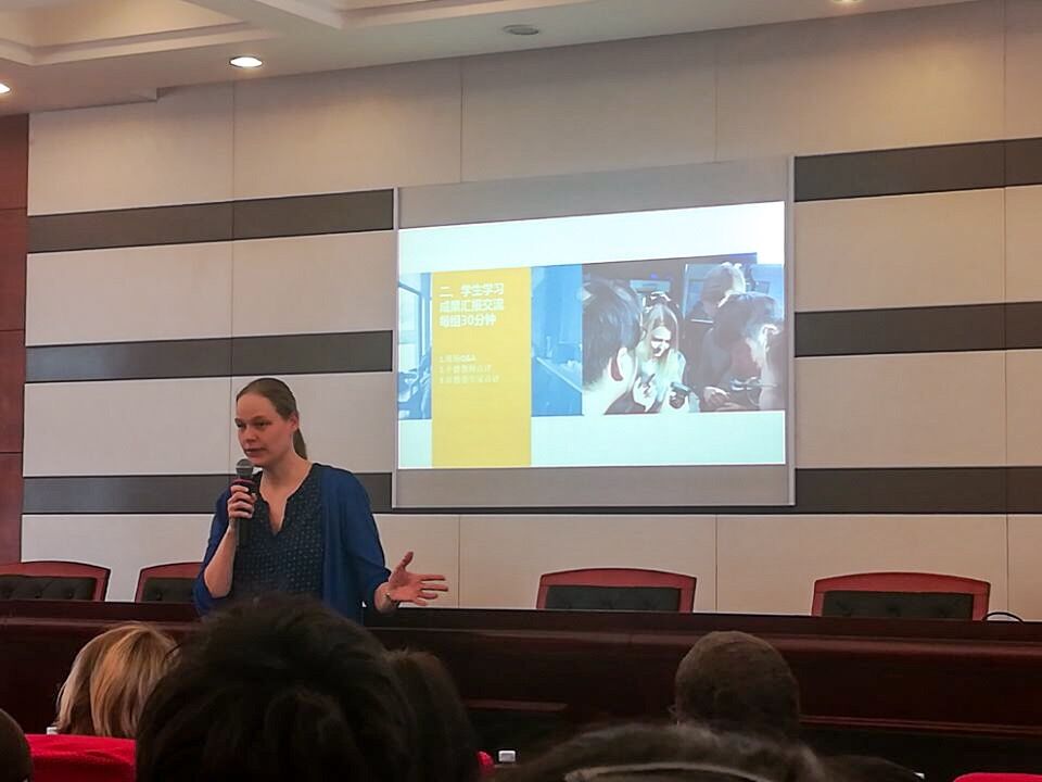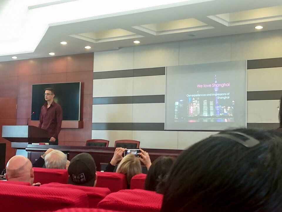 在第一天的演讲中,两校领导人就各自的学校进行了介绍以及深入了解,两校的同学们互相提问并完成解答,甚至互相交流了各自喜欢的音乐,让德国学生了解到我校的学生的学习生活和精神面貌。