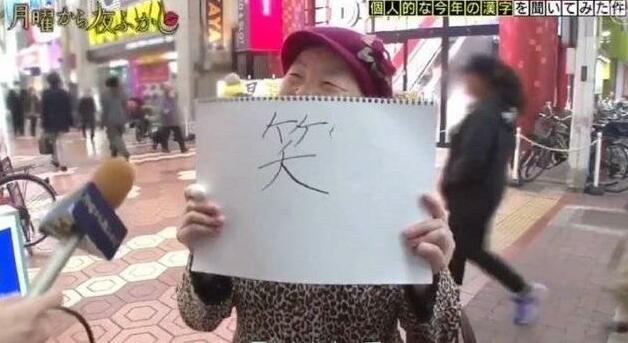 目前,岛国的某综艺在街头做了一个采访,用一个字来概括即将过去的2018年 ,用来评选出人气最高的一个年度“汉字”。其中一个接受采访者给出了一个“笑”字,笑容挡都挡不住。