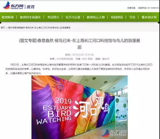 东方网3月25日报道我校学生参加上海长江河口科技馆观鸟活动