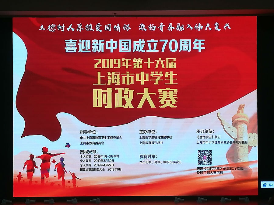 2019330日,第16届“上海市中学生时政大赛”复赛中,我校11名同学进入到了决赛中。