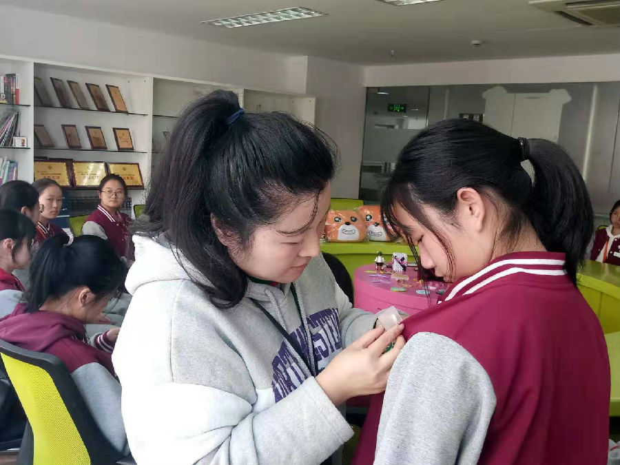 在简洁温馨戴牌仪式上,首先由向培滢老师为两位站长、副站长戴上了印有“易班工作站”字样的胸牌,肯定了站长和副站长目前为止的易班工作并希望授牌后她们能在易班工作中里起到带头作用,学校的各项活动中也积极参与,并在行为规范方面做到最好的示范。