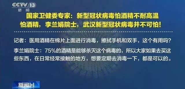 1月22日,国家卫健委高级别专家组成员、我国著名传染病学专家李兰娟院士在接受采访时表示,新型冠状病毒怕酒精,不耐高温,75%的酒精是能够杀灭这个病毒的。因此,话题“新型冠状病毒怕酒精不耐高温”登上热搜,与之相关的“饮高度酒对抗冠状病毒”的消息也迅速蔓延。