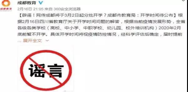 谣言五:学校将于3月2日起分批开学