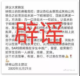 谣言三:钟南山院士建议盐水漱口防病毒