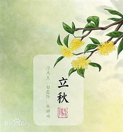 秋季是暑热与凉寒交替的季节。《管子》曰:秋者阴气始下,故万物收。进入秋季后,由夏季的多雨湿热过渡向秋季少雨干燥气候。在自然界中,阴阳之气开始转变,阳气渐收、阴气渐长,万物随阳气下沉而逐渐萧落。秋季最明显的变化草木的叶子从繁茂的绿色到发黄,并开始落叶,庄稼则开始成熟。立秋是古时四时八节之一,民间有祭祀土地神,庆祝丰收的习俗。