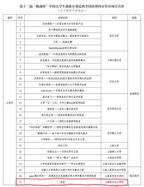 2020年10月,由团市委、市教委、市科委、市人社局、市科协、市学联等共同主办的第十二届“挑战杯”上海市大学生创业计划竞赛的市级决赛已落下帷幕。