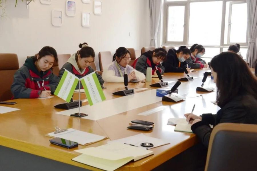 小记者们仔细聆听,认真记笔记。
