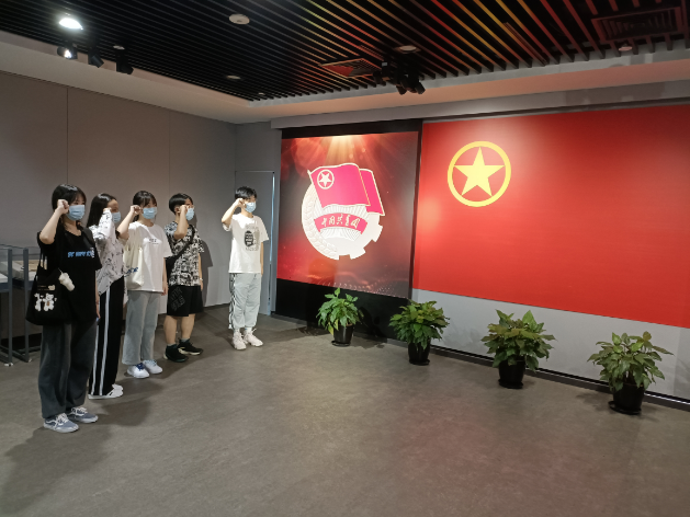 在参观之前,同学们首先走到了一楼的展示墙前,面对墙上的入团誓词,大家面向团旗、举右手握拳再次庄严宣誓:我志愿加入中国共产主义青年团,坚决拥护中国共产党的领导,勤奋学习,积极工作,吃苦在前,享受在后,为共产主义事业而奋斗。这不仅勾起了同学们入团时的回忆,更让同学们坚定了爱党爱国的信念,正如那句“请党放心,强国有我”!