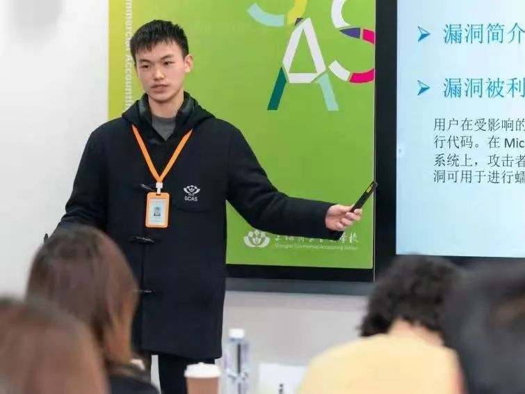 第四组则介绍了Windows的典型漏洞与修复方法,以及提升Windows安全性的防护之道。软件漏洞本身无法构成攻击,攻击者利用漏洞将攻击转变为一种可能,从而弱化了系统的安全性。比如,任意文件写入漏洞,指的是用户可以在正常情况下在本应该无法访问的某个文件目录中创建或者修改文件,从而导致文件产生危害性。任意文件写入漏洞常见的一种利用方法就是执行DLL劫持攻击。掌握Windows典型漏洞的修复方法,可以保护我们电脑系统的安全性,确保电脑上的机密资料不被劫持或外泄。陈博士作为第四组的导师,肯定了第四组同学们的现场表现力与这段时间的努力。