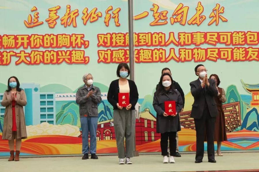 活动中,校领导先后为获得九月份行为规范示范班、2021-2022年度普陀区中等学校优秀班级等荣誉称号的班级;获得2022年上海市中等职业学校教师教学能力比赛一等奖的教师进行了颁奖。