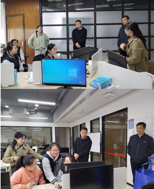 上海市第十届“星光计划”技能大赛——会计技能、财务数据处理与分析项目开赛在即, 4月24日上午,我校副校长金南辉,教务处主任朱晓将、 财经商贸教学部主任胡海梅来到崇文楼6楼看望集训队的指导老师和参赛学生。