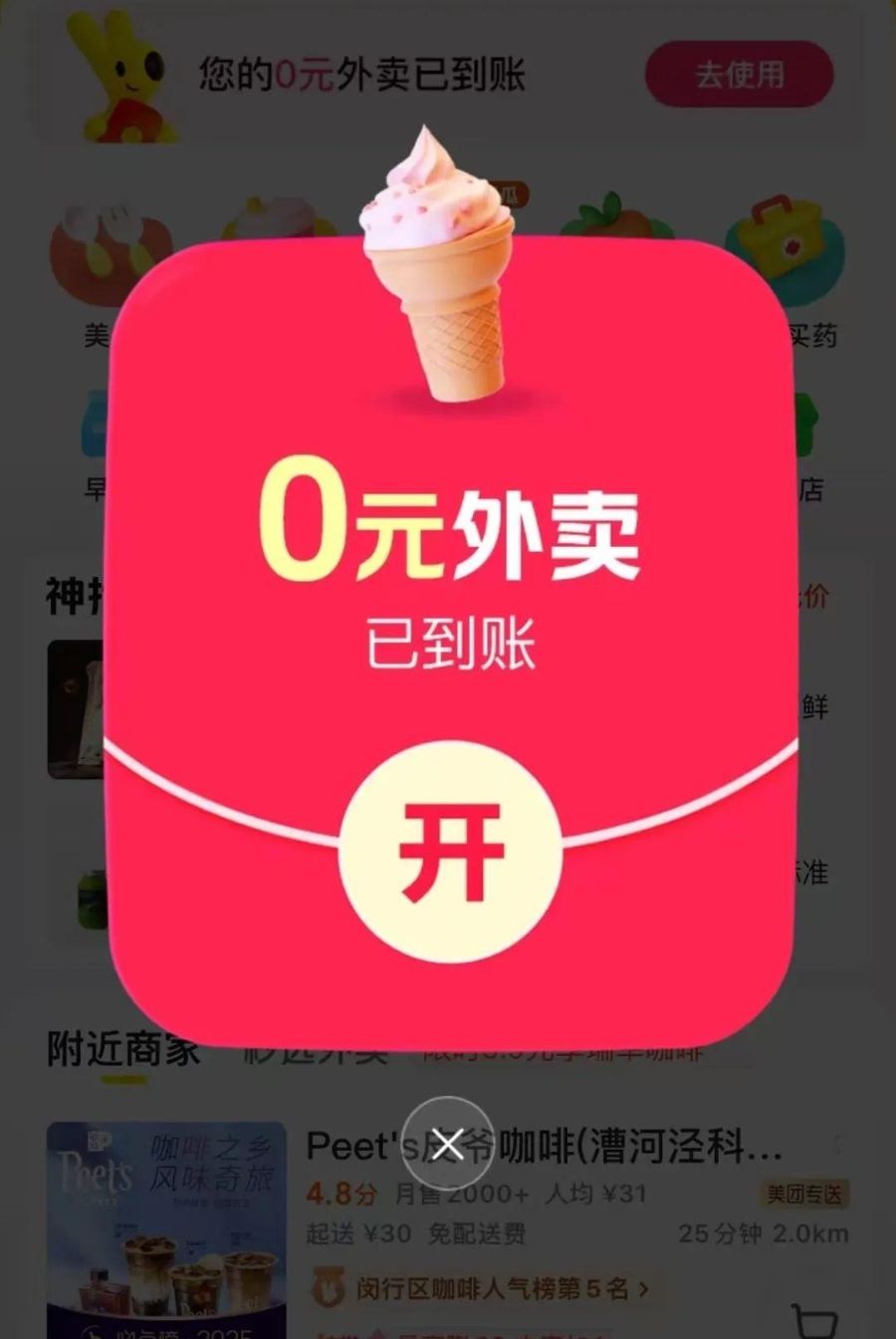 据网友反馈,美团在上个周末送出了多个线下咖啡茶饮的通兑券,但需要自取,淘宝闪购则依旧发放188元的红包,包括满3818.8的午餐外卖红包,不过免单卡仍需要消费者随机抽取获得。