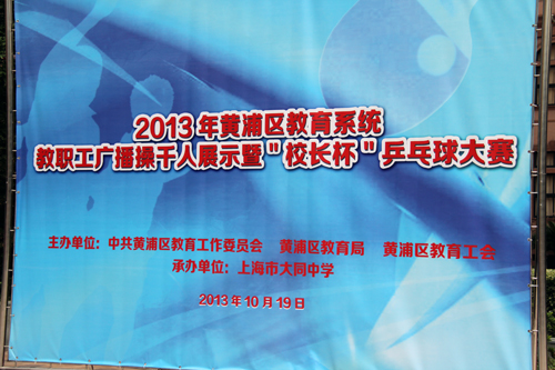 10月19日8时30分,2013年黄浦区教育系统教职工广播操千人展示暨“校长杯”乒乓球大赛在上海大同中学体育场如期举行。