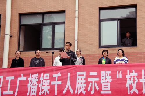 区教育党工委副书记刘寿华宣布活动开始。全区教育系统千余人一起做了第九套广播体操。我校11名教师在党支部马言标书记的带领下以饱满的精神参加了广播操展示活动。