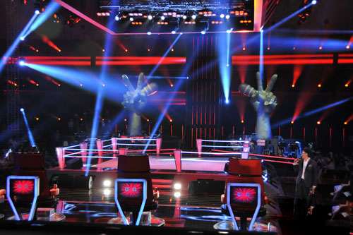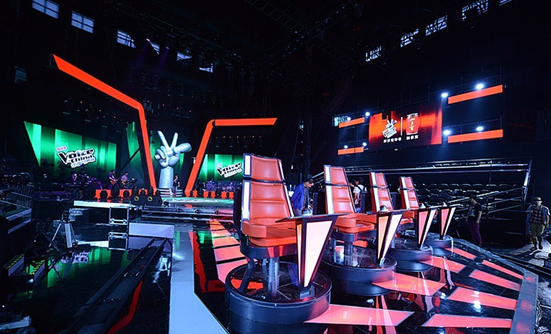 节目录制场地专业的后台音控操作设备、环绕全场的巨型LED屏也运用了高科技,就连每位学员脚下踩踏的舞台,也是一面智能LED屏幕,会随着学员演唱时的律动而变换图形和色彩。“既然名为《中国好声音》,除了模式、明星之外,最关键的是要让声音受到认可