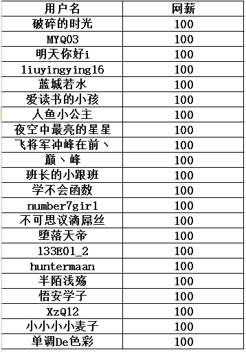 7月28日今日话题网薪奖励名单如下,网薪均已发放。