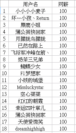 网薪获得情况: