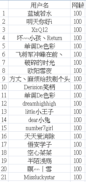 本次活动的奖励情况都在下面,网薪也已经发放,小伙伴们不要拿网薪拿到手软哦!当然,以后也请大家多多关照新的活动哦!