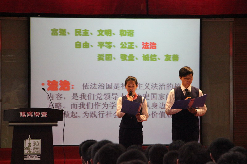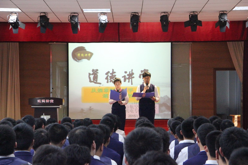 为进一步推进社会主义核心价值体系建设,不断提升师生的思想道德水平,我校机电专业部于2015年5月11日在北校区实训楼603室,举行了以“从规章制度入手,争做遵纪守法的航校人”为主题的道德讲堂专题活动。