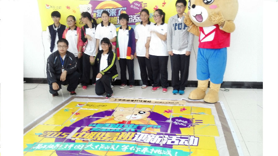 9月16日中午12点,2015易班迎新活动在上海市临港科技学校教学楼西侧拉开了序幕,可爱的“易班熊”伟伟的出没,立刻点燃了活动的气氛,许多学生,纷纷前往活动地,和易班吉祥物拍照留念,然后和易班工作人员一起互动,争先恐后地回答易班的有关知识,笑逐颜开地展示他们获得的易班纪念品。