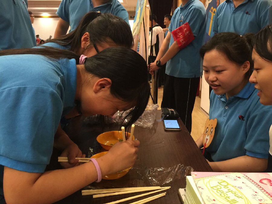 台上激烈平涂的同时,台下也展开了丰富多彩的活动:易班熊拼图,夹弹珠,吹乒乓球等小游戏同学们玩的不亦乐乎。每一个游戏站点都围着一群等待参与的同学们,离场时,几乎每一位同学手上都拿着奖品,满载而归!