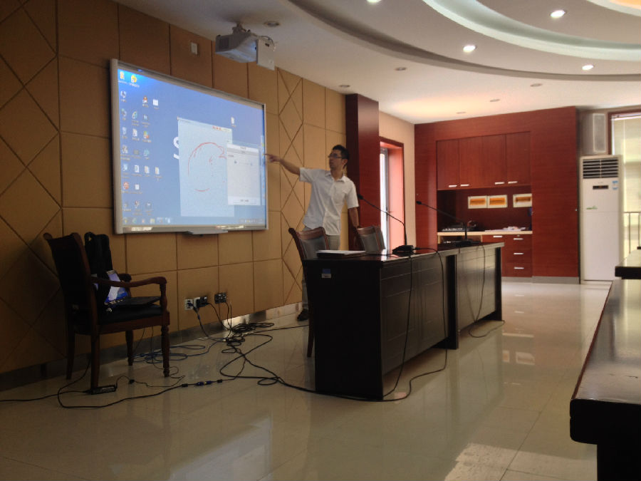 在各班教室里随处可见一些电子器材,如白板、空调、电脑等。为了让新生们能更好地使用这些电器,Smart公司的培训师向各班生活委员讲解了电子白板的使用技巧、常见问题以及维护方法。